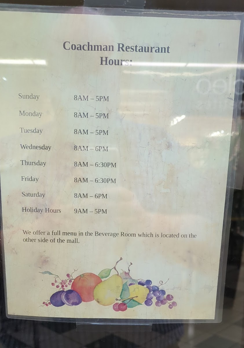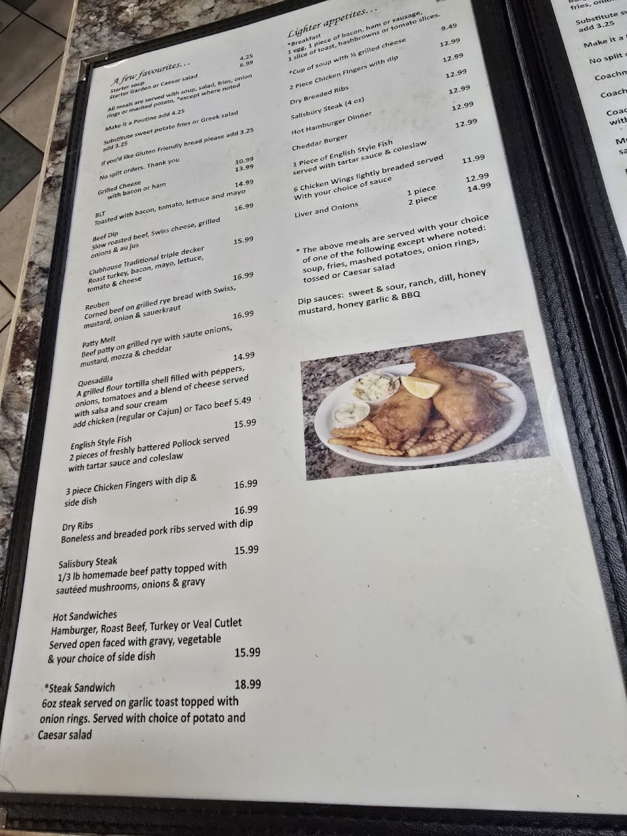 Coachman Restaurant and Bar Menu